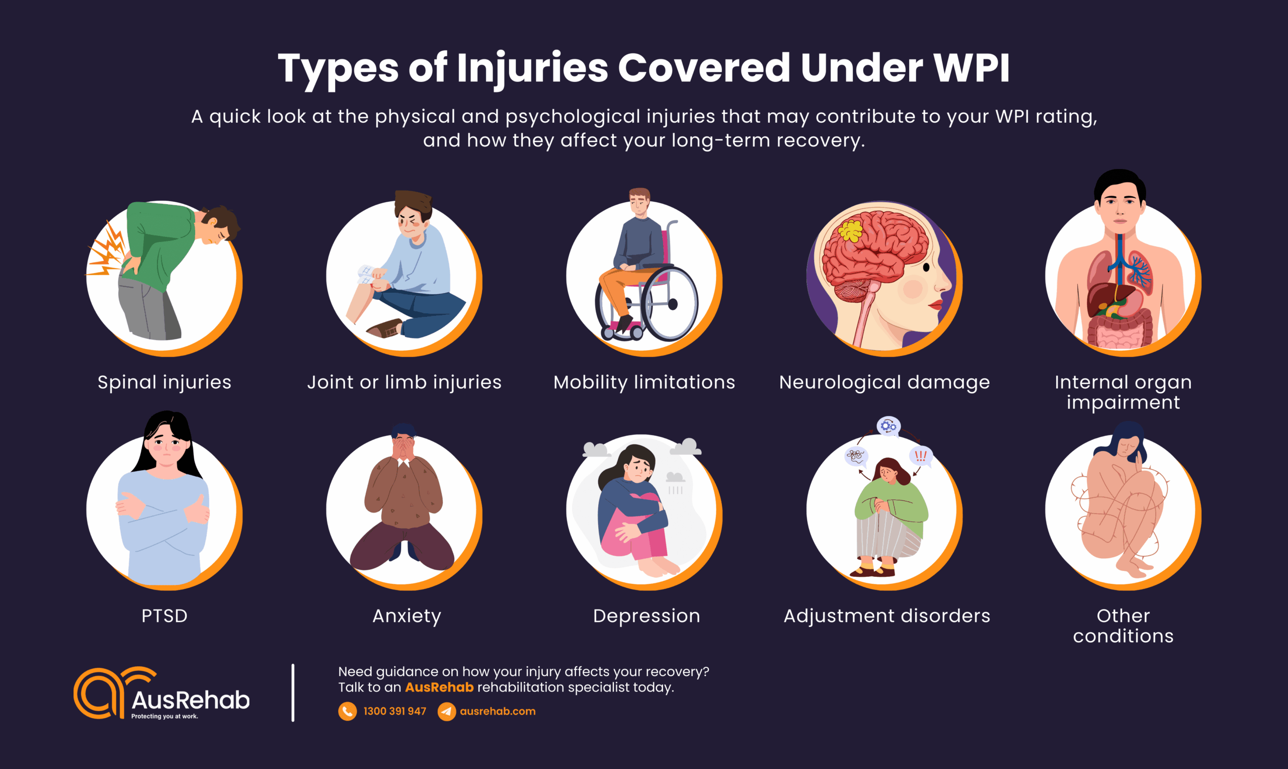 How does AusRehab support WPI assessments and recovery?